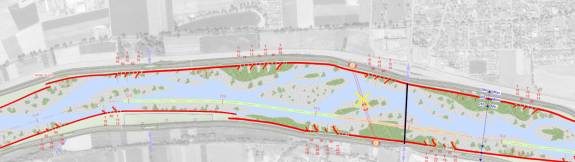 Die Flussbau AG ist Fachplanerin Hydraulik, Geschiebe und Morphologie. Sie führt die numerischen 1d-Simulationen der Hochwasserabflüsse und des Geschiebetransports durch. Diese dienen als Grundlage für die Dimensionierung des Flussschlauches mit dem dynamischen Gerinne, den Dammfusssicherungen, den Vorländern und den Hochwasserdämmen sowie der Geschiebebewirtschaftung und des Unterhalts im Bereich der Sohle und der Vorländer. Weiter werden numerische 2D-Simulationen von Überflutungen der Talebene bei Hochwasser durchgeführt. Dies erfolgt für den Istzustand auf Basis von Szenarien mit einem dynamisch fortschreitenden Dammbruch.